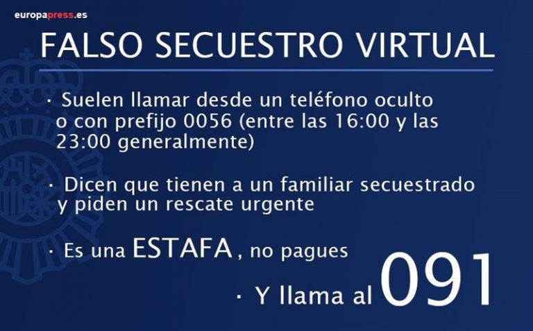 La Delegación del Gobierno ha explicado que, en realidad no se trata de un secuestro real, sino de una modalidad de estafa telefónica, en la que se busca generar una situación de bloqueo y angustia en el interlocutor, haciéndole creer que un familiar cercano ha sido raptado y que será torturado si no paga de forma inmediata un rescate.