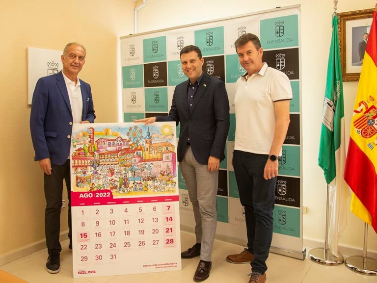 Las localidades de La Puebla de Montalbán y Fuensalida son las protagonistas del mes de agosto del calendario de la aseguradora Soliss. Su consejero institucional, Celedonio Morales, y el responsable de la oficina de La Puebla de Montalbán, Carlos Álvarez Díaz-Guerra, han visitado personalmente estos municipios toledanos y les han hecho entrega a sus respectivos alcaldes de una copia del almanaque en tamaño póster de 84x1,20 cm.