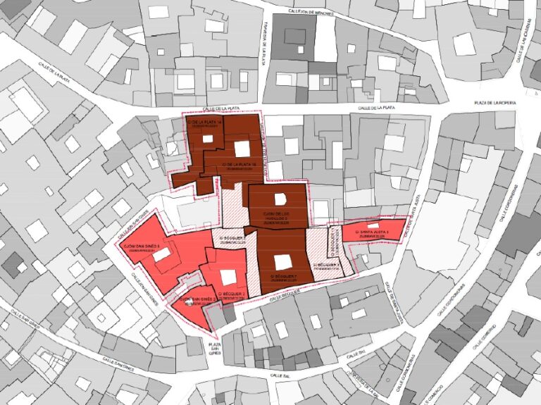 De su lado, el Plan Especial de Reforma Interior (PERI) en la cuesta del Corchete 5 y cuesta de Santa Leocadia 22 y 24 afectaría a tres inmuebles poseedores en total de cinco patios en su interior, algo que se vería reducido "a la posibilidad de conservación de dos patios medievales por su interés arqueológico".