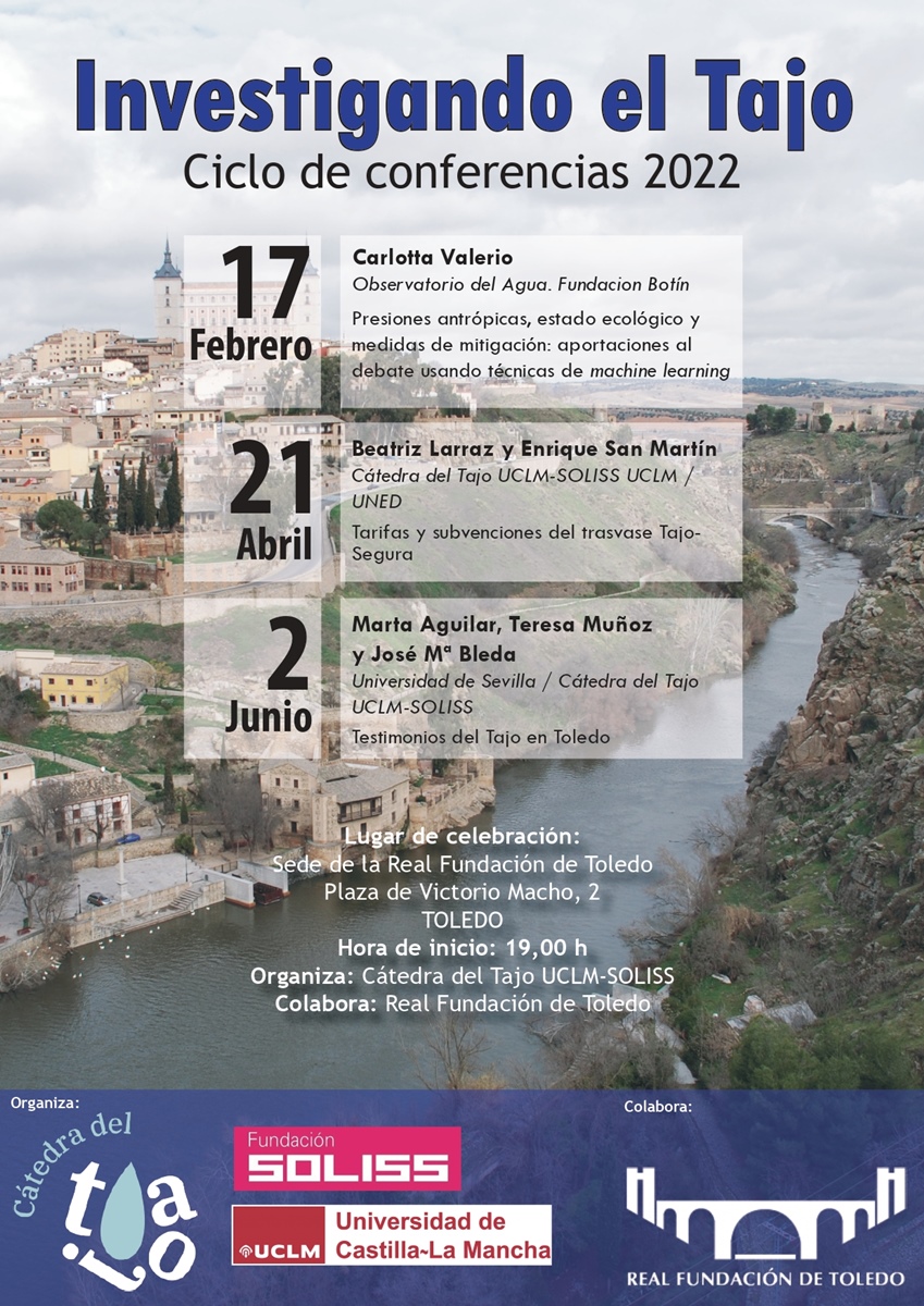 Como fruto de este apoyo se organizará el ciclo de conferencias 'Investigando el Tajo' que se celebrarán en la sede de la Real Fundación, situada en la plaza de Victorio Macho. Se trata de un total de tres charlas que comenzarán el próximo 17 de febrero con 'Presiones antrópicas, estado ecológico y medidas de mitigación: aportaciones al debate usando técnicas de machine learning'.