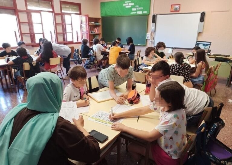 Suena el timbre que avisa del fin del recreo y el alumnado de 5º de Primaria del CEIP San Lucas y María de Toledo regresa al aula. Toca doble sesión de Lengua y Matemáticas, dos asignaturas que trabajan de manera conjunta mediante grupos interactivos en los que los propios estudiantes hablan entre ellos, llegan a acuerdos y resuelven el problema que se les plantea.