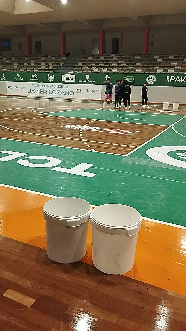La situación del pabellón Javier Lozano, afectado por goteras, obligó este pasado fin de semana a suspender el partido de fútbol sala de la Tercera División que iban a disputar el FS Socuéllamos y el el FS Toledo, que trasladó a través de las redes sociales la situación.