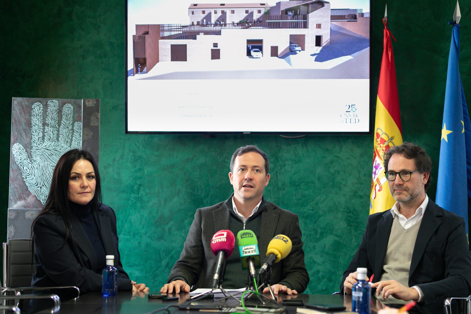 Velázquez ha presentado al gerente del Consorcio, Jesús Corroto, y la diputada provincial Manuela Lominchal -alcaldesa de Corral de Almaguer y aparejadora de profesión-, varios renders de este proyecto que, en su segunda fase, llevará a cabo las otras 10 unidades residenciales, el aparcamiento y la plaza que la unirá con la plaza del Conde, frente al Palacio de Fuensalida.