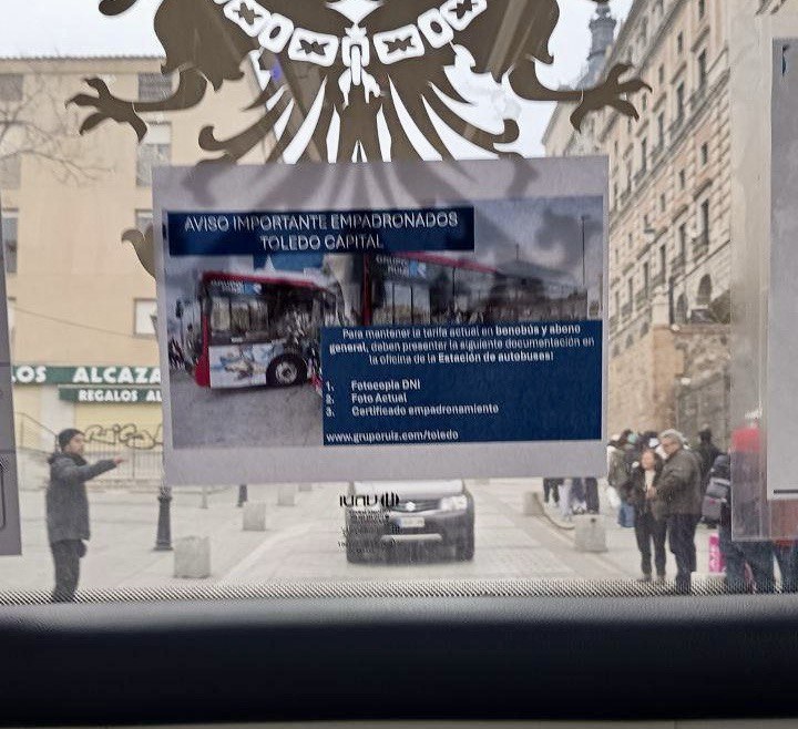 El transporte urbano de Toledo cambia sus tarifas para aquellos que no estén empadronados en la ciudad. Usuarios del servicio han conocido a lo largo de este jueves la nueva medida a través de los carteles informativos que se han colocado en el interior de los autobuses.