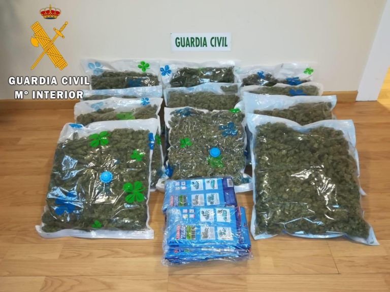 La Guardia Civil identificó a su conductor y único ocupante, un hombre de origen asiático de 29 años, al que se le realizó un registro superficial encontrando 667 euros. En el registro del vehículo los agentes hallaron tres paquetes con bolsas de cierre hermético de las mismas características de las utilizadas para envasar la marihuana.