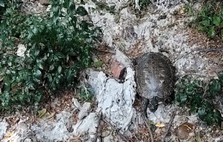 Paseando en un mar de toallitas, a orillas del Tajo en Toledo, estos días se encontraba una especie de tortuga que habita en la ribera del río y que afecta de manera negativa a su biodiversidad. Se trata del galápago de Florida, un animal que comúnmente se ha usado como mascota y que en las últimas décadas se ha convertido en una de las especies exóticas invasoras (EEI) más extendidas en España.