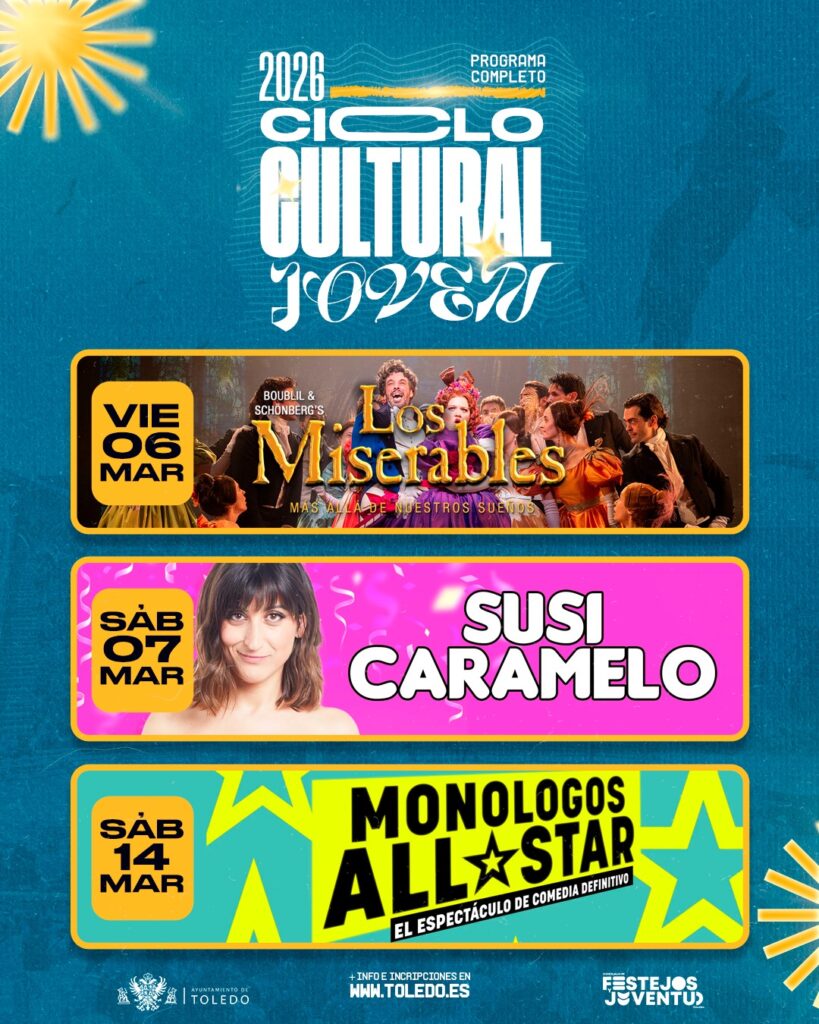 Toledo celebrará durante este mes de febrero y el de marzo varias actividades con motivo de la segunda edición del Ciclo Cultural Joven, que incluye un ciclo de monólogos, la actuación de Susi Caramelo o un viaje a Madrid para ver la obra de teatro 'Los Miserables'.