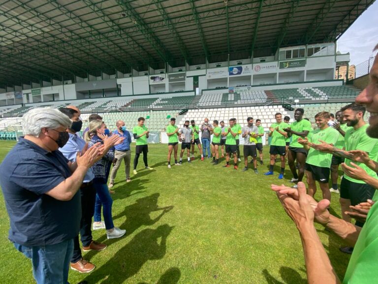 Palabras de ánimo que también ha compartido con ellos el concejal de Deportes, Pablo García, quien ha acompañado en esta cita a la regidora municipal. Asimismo, han estado presentes, el presidente del club, Alejandro Jara; el director deportivo, Luis Jaime Puebla, y el director financiero, Carlos Vázquez.