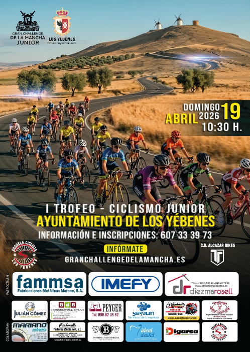Los Yébenes se prepara este fin de semana para recibir la segunda etapa de la Gran Challenge de La Mancha, una competición ciclista junior recién incorporada al calendario nacional que, en su primera edición, ya ha logrado reunir a dieciséis equipos -nacionales e internacionales- y a más de 120 corredores en parrilla.