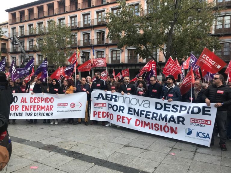 Vanesa García ha sido despedida de su puesto en ICSA, dependiente de Aernnova, por bajas por enfermedad. La trabajadora ha contado visiblemente emocionada su caso ante las cámaras. Hace nueve años recibe el diagnóstico de un tumor en un oído, por lo que debe darse de baja durante dos años. A su regreso al trabajo, la empresa intentó ofrecerle dinero para que dejara el puesto, explican desde Comisiones Obreras, pero ella decidió mantenerse en su puesto.