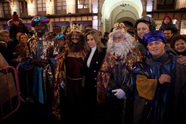 La alcaldesa de Toledo, Milagros Tolón, ha recibido este sábado en la plaza de Zocodover a Sus Majestades los Reyes Magos de Oriente después de una multitudinaria Cabalgata que será recordada como la más extensa y mágica de los últimos años. El cortejo de la ilusión ha contado con 10 carrozas y 8 pasacalles que han sumado más de un centenar de actores y actrices, bailarines y bailarinas, así como acróbatas y personajes infantiles.