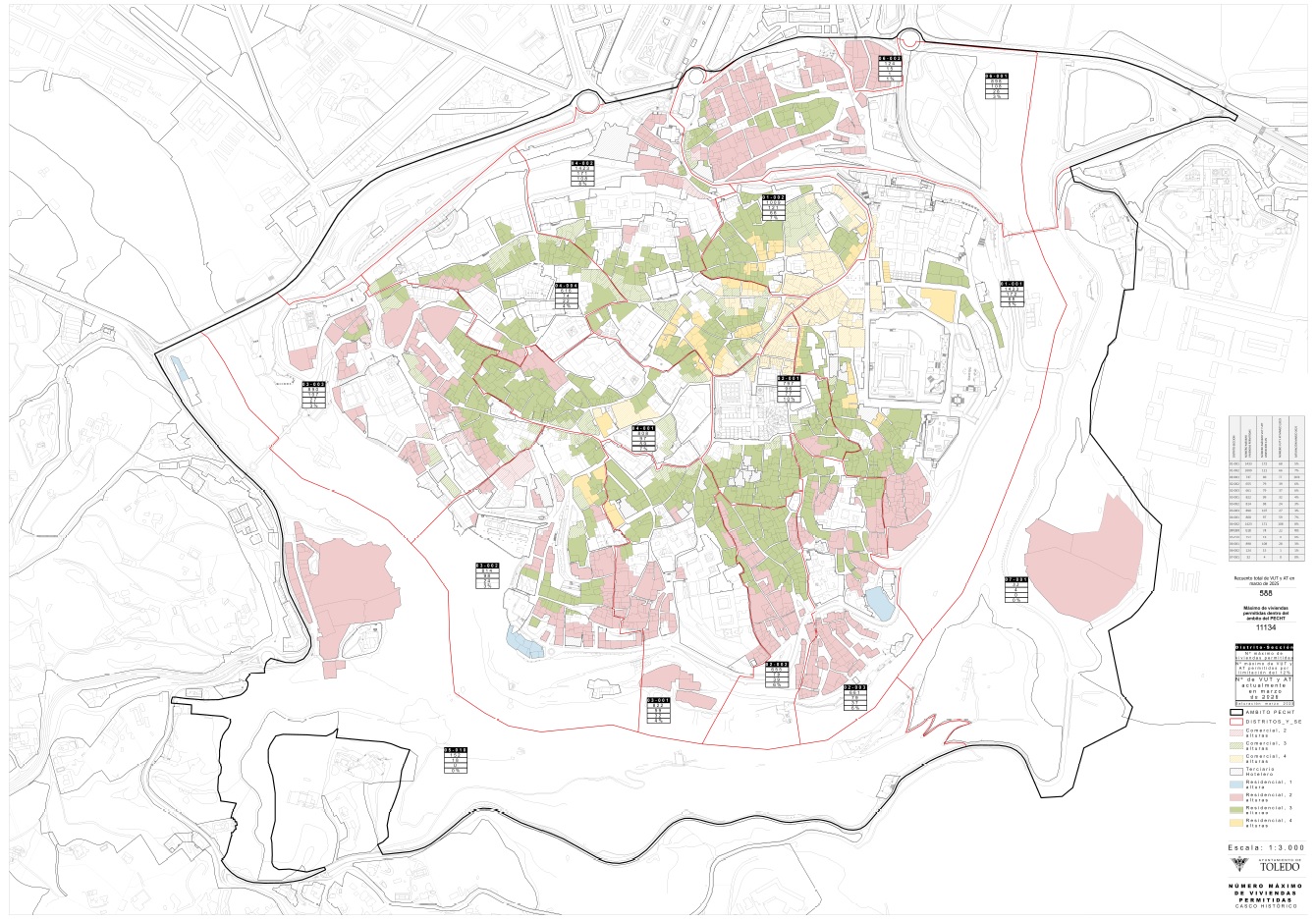 Así, aplicando el tope del 12% establecido para cada distrito censal de este barrio -que se aplica también al resto de barrios de la ciudad-, un total de 1.338 podrían dedicarse a esta actividad, por lo que -restando las 588 que contabiliza el Consistorio-, todavía podrían convertirse en alojamientos turísticos unas 800 viviendas más, pese a la escasa oferta residencial que hay en el Casco Histórico en la actualidad.