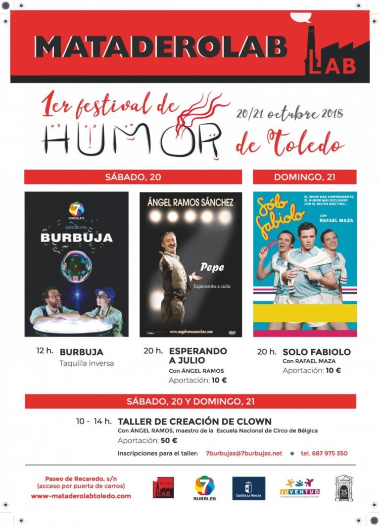 Matadero Lab y la compañía de teatro 7 Bubbles han organizado el primer Festival del Humor en Toledo que tendrá lugar este próximo fin de semana, durante los días 20 y 21 de octubre. Un Taller de Clown o la representación de varios espectáculos cómicos componen el grueso de este novedoso evento.