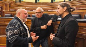 - Txema Fernández dialoga con los diputados nacionales en el salón de plenos Congreso / Imagen: IU