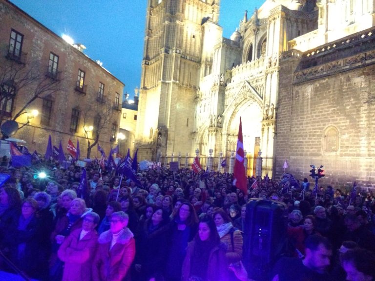 Multitudinaria manifestación en la capital castellano-manchega, unas 5.000 personas según las fuentes, que han caminado desde el entorno de la toledana Puerta de Bisagra hasta la plaza de Zocodover donde, literalmente, nadie podía moverse hasta que la marcha prosiguió su camino por las estrechas callejuelas del Casco Histórico.