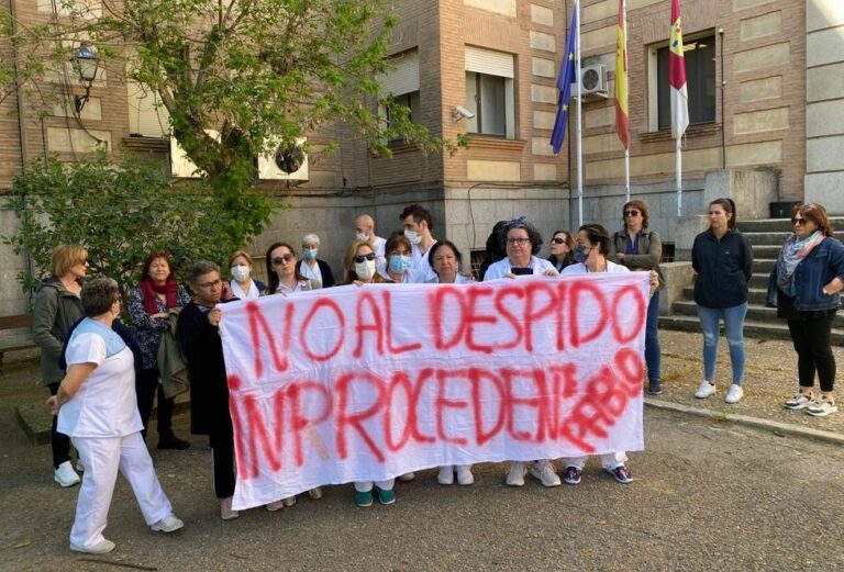 Las trabajadoras de la contrata de la Limpieza -ISS- del Hospital Virgen del Valle de Toledo se han concentrado para expresar su rechazo al reciente despido de un compañero de este centro, así como el de otra compañera del Hospital Universitario de Toledo.