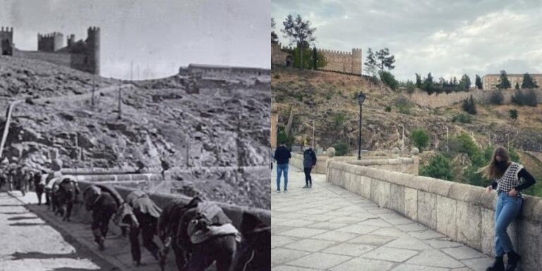 “Compartí con los alumnos un dossier con fotografías del Toledo de la Guerra Civil y ellos tenían que escoger alguna y recrear ese escenario de barbarie pero en la actualidad. Por ejemplo, si la foto era del Arco de la Sangre o en la Plaza de Zocodover, tenían que acercarse a ese mismo sitio y hacerse una fotografía en la misma posición y ángulo”, nos cuenta Moreno, profesora en prácticas, en un centro que fue el suyo propio, y creadora de este trabajo. “De hecho Paco fue mi profesor y ahora es el tutor de mis prácticas del Máster de Educación”.