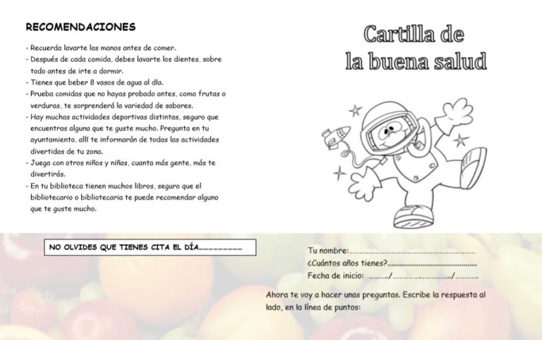 Las estudiantes de enfermería han añadido una tabla “que recoge los datos semanales para que los menores se den cuenta de lo que hacen bien y mal”. Según Muñoz, el objetivo es que “se sientan mayores siendo responsables y conscientes de su propia salud”. Además, las cartillas también incluyen asesoramiento para los progenitores con recomendaciones sobre alimentación, higiene o, incluso, actividades de tiempo libre que estimulen la movilidad de los menores.