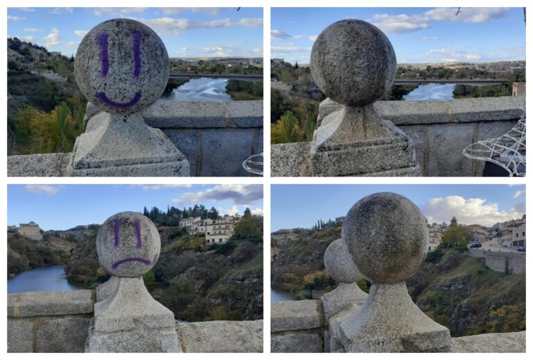 Ya son repetidas las ocasiones en las que se encuentran este tipo de pintadas en puentes patrimoniales de la ciudad, como es también el de Alcántara y su entorno, donde hace escasos días el Consistorio procedía también a su limpieza.