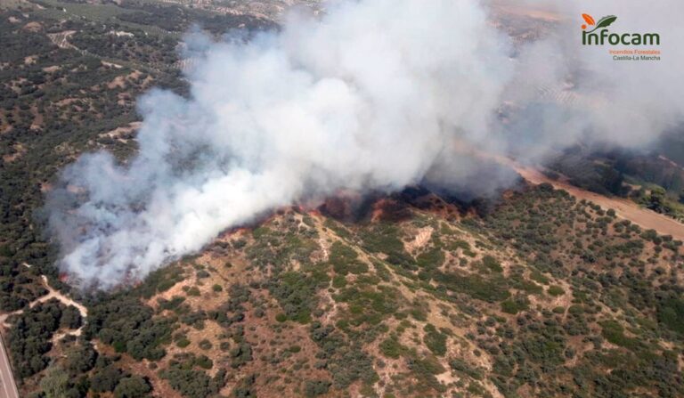 En un principio, el Servicio de prevención y extinción de incendios forestales de Castilla-La Mancha (Infocam) activaba el nivel 1, que descendió a nivel 0 a las pocas horas.