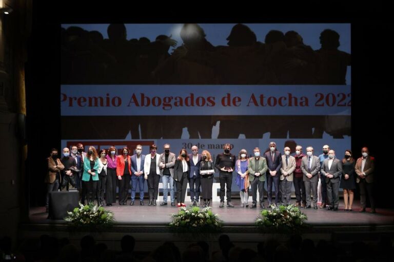 "Queremos empezar pidiendo paz, solidaridad y democracia. No a la guerra". Así comenzó la última gala de los premios Abogados de Atocha, que este año homenajearon al proyecto Open Arms. Antonio Arrogante, de la Fundación Instituto de Estudios Sociales de Castilla-La Mancha, recordó emocionado a Almudena Grandes, que recibió el premio también hace unos años, y a Alejandro Ruiz-Huerta Carbonell, superviviente de la matanza ocurrida hace ya 45 años en la calle Atocha. "La brutal masacre", recordó Arrogante, provocó un "dolor enorme" para las familias, la organización y también para todo el país. "Como siempre hacen estos actos de ultraderecha", señaló.