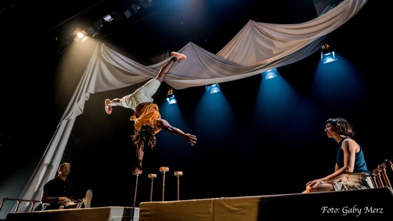 Desde el primer instante, el espectador comprendió que no estaba ante una función convencional. Cuatro camas ocupaban el escenario, objetos cotidianos que pronto se transformaron en plataformas de vuelo, refugios, barreras a superar y trampolines hacia el vacío. De esta escenografía mínima nació un universo simbólico en el que las emociones se narraban a través del movimiento y donde la corporalidad de los artistas hablaba con una elocuencia que superaba cualquier palabra.