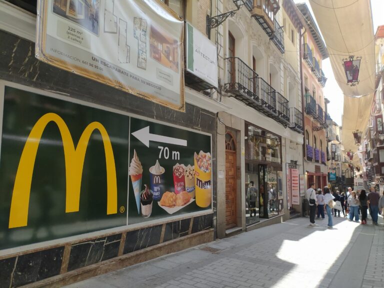 El Ayuntamiento de Toledo ha dado la orden de retirar un vinilo publicitario de McDonald's instalado en el escaparate de la antigua mercería Montes, ubicada en la calle Comercio del Casco Histórico. El motivo, apuntan fuentes municipales, es que incumple la ordenanza vigente de publicidad y rotulación en la ciudad, declarada Patrimonio de la Humanidad.