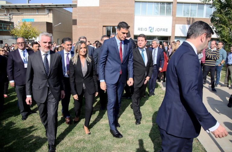 El presidente de Gobierno, Pedro Sánchez, ha asistido a la inauguración de la ampliación de la sede de la empresa farmacéutic Reig Jofre en Toledo, acompañado, entre otros, por Emiliano García-Page, presidente de la Junta de Comunidades, y la alcaldesa de la ciudad, Milagros Tolón. Tanto Page como Tolón destacaron que era la primera vez que un presidente de Gobierno visitaba el polígono industrial de la ciudad, agradeciendo el gesto del socialista.