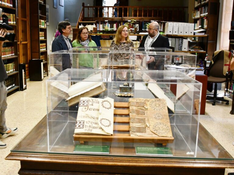 "Y, por supuesto, la muestra de libros de interés custodiados en el Archivo Provincial, con unos quince libros tanto de su fondo bibliográfico como libros de archivo, documentos estos últimos únicos y originales que pertenecen a los distintos fondos documentales guardados en sus instalaciones".