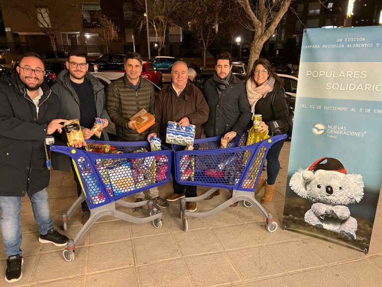La iniciativa 'Populares solidarios' que promueve cada año Nuevas Generaciones de la ciudad de Toledo ha conseguido recaudar unos 1.400 kilos de alimentos y 300 juguetes que van a destinar a Cáritas.