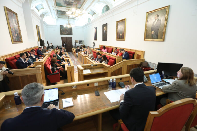 El pleno municipal ordinario celebrado este viernes en el Ayuntamiento ha aprobado solicitar al Ministerio de Interior y a la Delegación del Gobierno, responsables de las Fuerzas y Cuerpos de Seguridad del Estado, que ejecute las acciones e implemente las medidas necesarias para acabar con el incremento de los hechos delictivos en la ciudad de Toledo. Una moción presentada por el Grupo Municipal Popular que ha salido adelante con los votos a favor de PP y Vox y los votos en contra de PSOE e IU-Podemos.