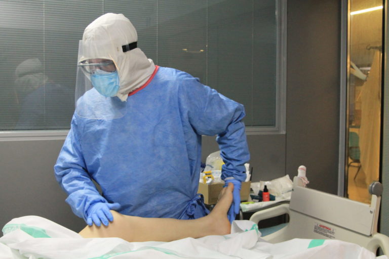 El colectivo trabaja por un lado con pacientes que se encuentran ingresados en UCI y en planta y por el otro está realizando un seguimiento de las secuelas de la COVID-19 en dichos pacientes. “Lo primero que empezamos a hacer son movilizaciones pasivas. Normalmente los pacientes están sedados, inconscientes o débiles y lo que hacemos es moverles todas las articulaciones para mantener lo que nosotros llamamos el balance articular y para que la musculatura no se atrofie tanto. El objetivo es evitar que haya secuelas”.