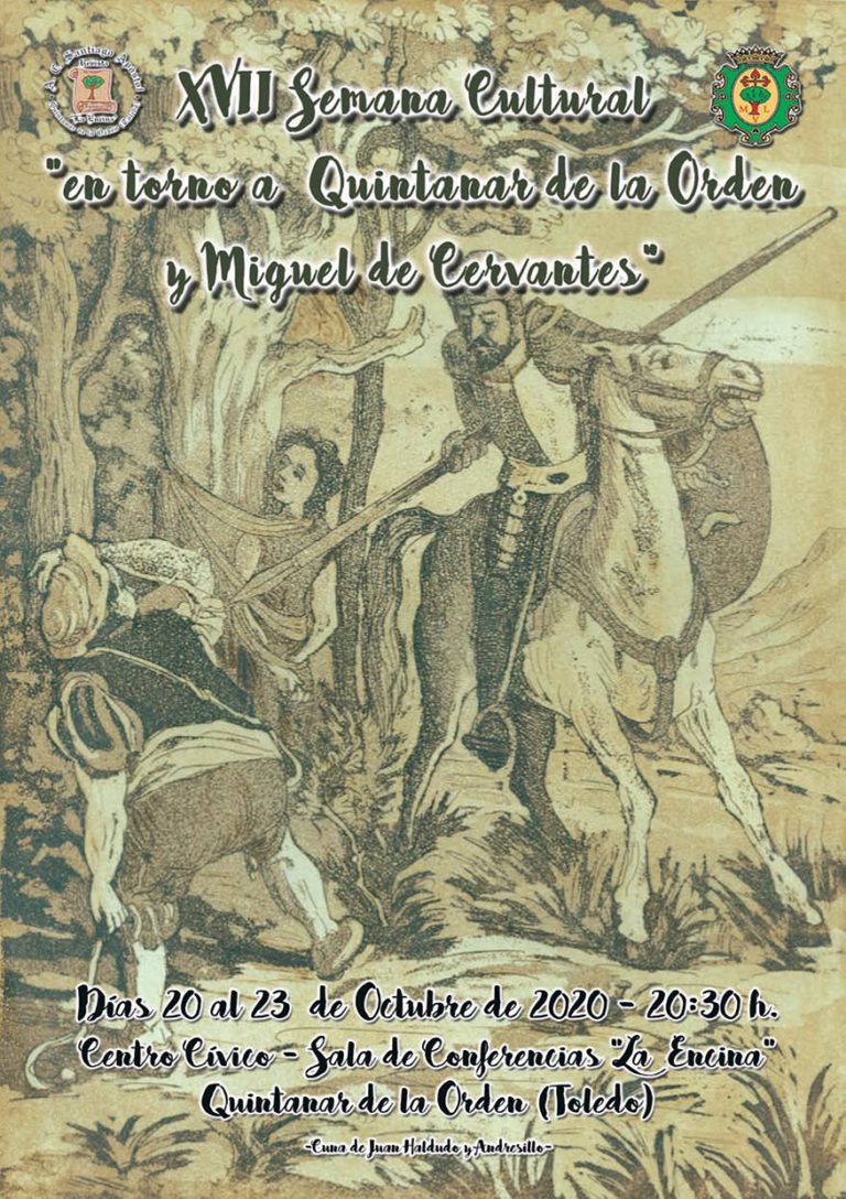 Quintanar de la Orden acogerá su tradicional Semana Cultural 'en torno a Quintanar de la Orden y Miguel de Cervantes' del 20 al 23 de octubre, su décimo séptima edición organizada por la Asociación Cultural Santiago Apóstol.