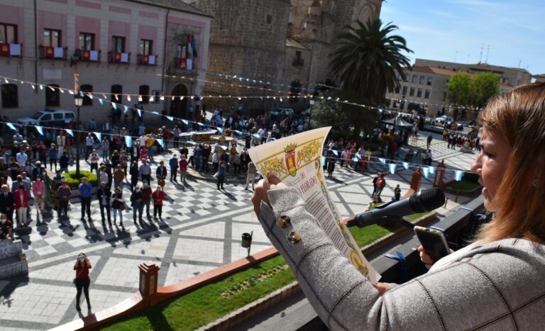 Así lo ha expresado la regidora talaverana durante el pronunciamiento del Pregón del Leño Florido desde el Balcón Noble del Ayuntamiento, donde ha aprovechado para pedir que las ofrendas a la Virgen en la Basílica este año estén dirigidas a pedir por aquellos que hoy están sufriendo los estragos de la guerra, ensalzando el deseo de que "callen las armas y reine la paz".