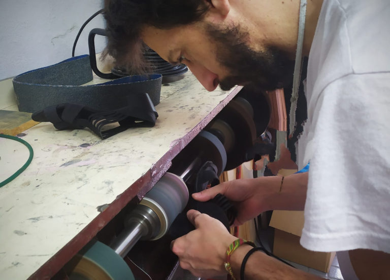 Adriana Nogales y Santiago Sosa regentan desde hace un lustro un comercio del Casco Histórico de Toledo -Charrua- dedicado a la venta de ropa, complementos o bolsos de piel realizados artesanalmente por ellos mismos. Con la actual situación de pandemia y ante la ausencia de turismo -principal sostén del negocio-, han decidido reinventarse mirando a su propio pasado para impulsar la reparación de calzado.