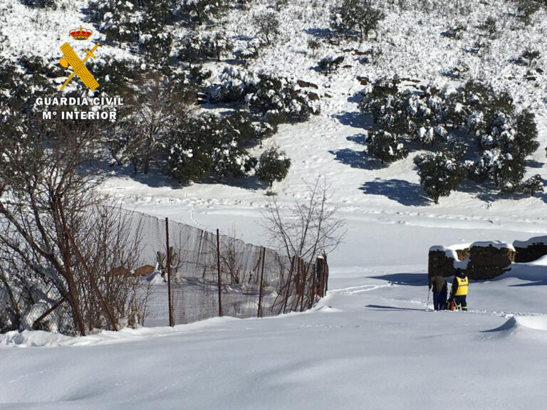 La Guardia Civil rescató este lunes a un hombre de 64 años de edad que se encontraba aislado por la nieve en una finca ganadera desde el pasado día 8 de enero. Esta persona, con importantes problemas de movilidad y diabético, precisaba medicación de forma urgente. En esta actuación participaron además distintas patrullas de la Guardia Civil, un helicóptero de este cuerpo y otro medicalizado del SESCAM y personal civil.