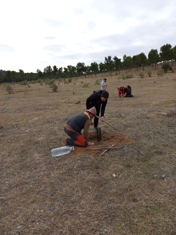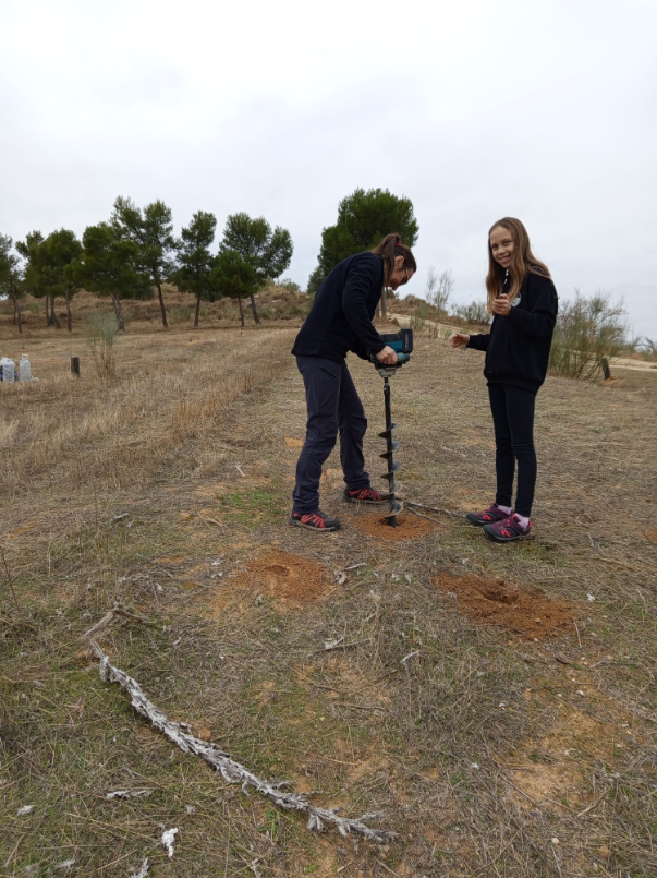 A continuación, se revisaron los plantones que se han puesto años atrás, que cuentan con más de 90% de supervivencia, y se han plantado más de 350 ejemplares de especies autóctonas: Quercus rotundifolia (encina), Quercus coccífera (coscoja), Retama sphaerocarpa ( retama), Thymus zygis subsp sylvestris (tomillo) especie endémica del centro de la península y Stipa tenacissima (esparto) declarado vulnerable por la IUCN por su importancia en la protección de los suelos contra la desertificación.