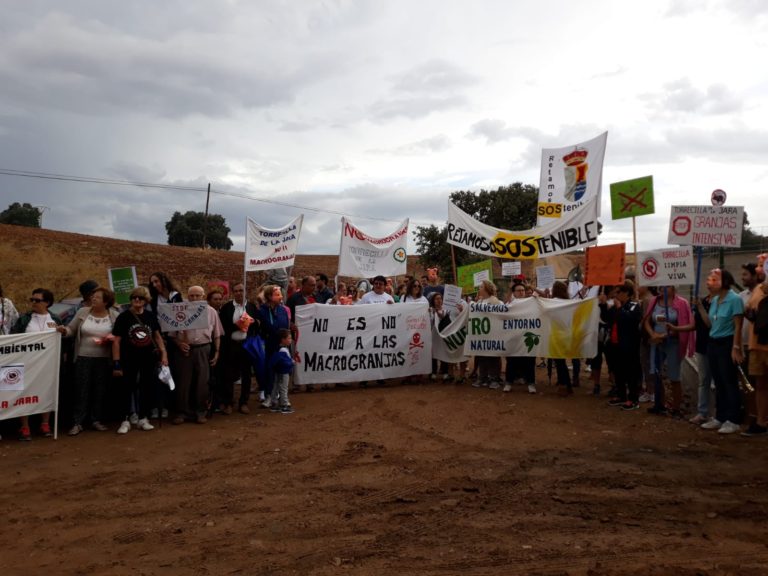 "La asistencia a la protesta superó todas las expectativas y más de 250 vecinos de Retamoso de la Jara y de Torrecilla de la Jara iniciaron una marcha desde sus respectivas localidades y se concentraron en la mañana del domingo a las puertas de una de las macrogranjas, después de recorrer el antiguo camino que conectaba ambos municipios y que fue cortado de forma indebida por la promotora, al situar las instalaciones de las macrogranjas justo en trayecto del histórico camino", han denunciado las plataformas vecinales.