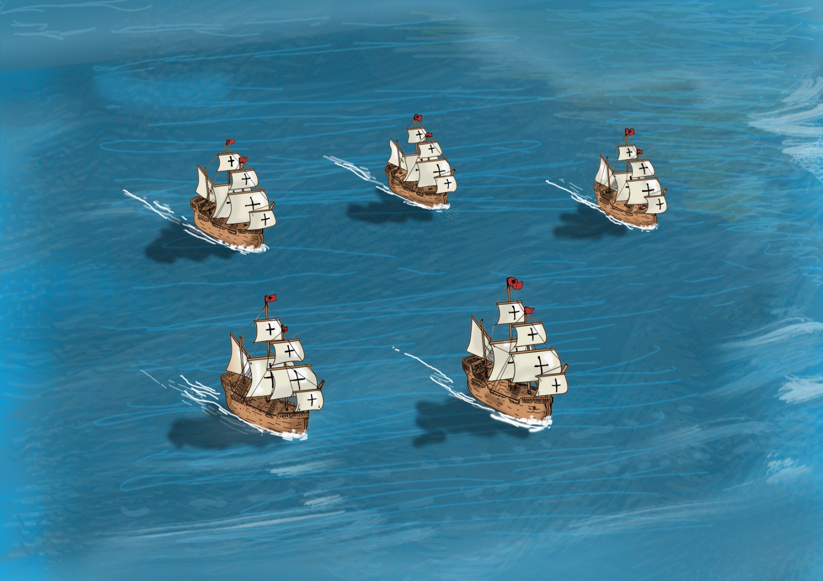 ilustración de las naos que protagonizaron la primera vuelta al mundo para el libro 'Antón de Goa, el toledano que emprendió la vuelta al mundo de Magallanes-Elcano' / Jesús Sánchez Daimiel