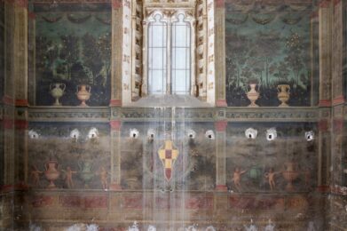 Son pinturas murales al óleo sobre yeso que quedaron tapadas en 1780 por el armario y que vuelven a verse gracias a la restauración que se está realizando en la antesala capitular