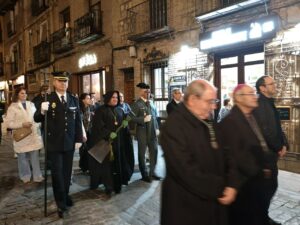 Una multitud se congregó a su salida de la parroquia mozárabe y en la parte inicial del recorrido, hasta la plaza de Zocodover. Allí se unió también a la procesión, coincidiendo con el primero de los responsos que hacen a lo largo del recorrido -en lugares donde ajusticiaron a personas de cuyos cadáveres se hacía cargo la Cofradía-, el arzobispo de Toledo, Francisco Cerro Chaves.