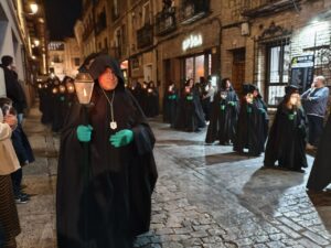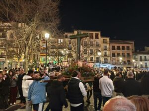 En su salida de Ocaña, durante la tarde, pudieron visitar la Catedral, merendar en un bar del Casco Histórico y prepararse para el desfile religioso. Pasadas las nueve y media de la noche, salieron de la iglesia de las Santas Justa y Rufina junto a los más de doscientos hermanos que forman parte de la que es la cofradía más antigua del mundo -celebra este año su 940 aniversario-.