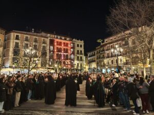 Al ritmo de un tambor desafinado -el único instrumento que acompaña esta procesión- se dirigieron hasta la calle Santa Fe para continuar su bajada por Cervantes, donde el cortejo comienza a hacerse más íntimo y silencioso hasta que, unas horas cuatro horas después, regresan de su periplo por el Casco Histórico a la misma parroquia mozárabe.