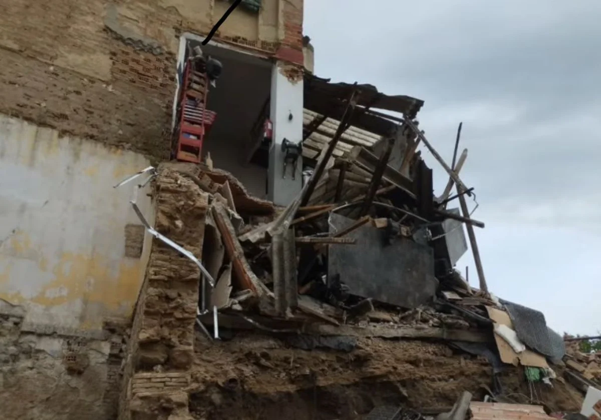 Tal y como se ve en las imágenes que han cedido a este medio, las viviendas quedaron pendientes de la resistencia que tenga un pilar del inmueble que no se derrumbó. Los restos de la fachada cayeron a un solar anexo en el que en los últimos años se hallaron nuevos restos, tras derribarse un edificio, que confirmaron que allí se ubicó el anfiteatro romano de Toledo, en el barrio de Covachuelas.