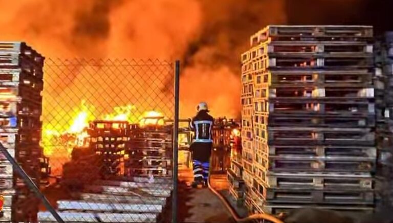 Bomberos de los parques de Orgaz y Toledo han participado en la extinción de un incendio en un almacén de palés situado en la calle Sector 12 de Olías del Rey, y cercano al Punto Limpio de esta localidad toledana. No ha causado daños personales pero sí materiales, como los propios palés, un coche y traspales.