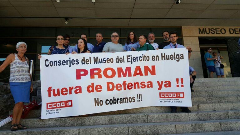 Los conserjes piden al Ministerio de Defensa la rescisión con carácter urgente del contrato a la empresa Proman, pues desde que esta se hiciera con la adjudicación del servicio de conserjería del Museo del Ejército han sido numerosos los conflictos laborales que se han ido sucediendo y "reiterados los impagos de salario que viene sufriendo la plantilla", denuncia el responsable regional de Acción Sindical de Construcción y Servicios de CCOO CLM, Carlos García Montoya.