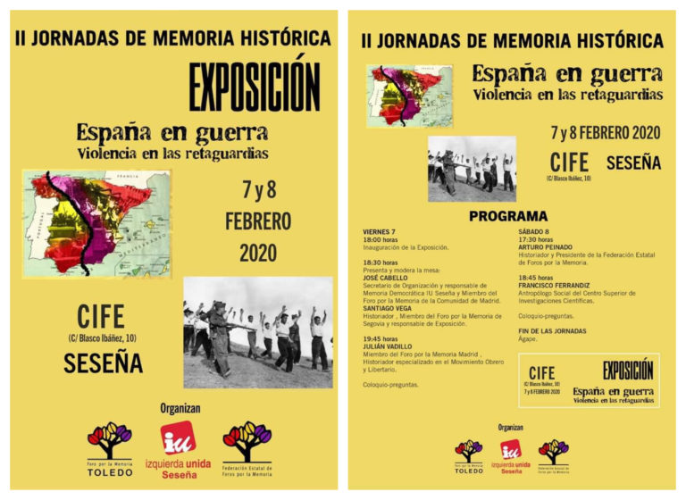 La localidad toledana de Seseña acogerá los próximos 7 y 8 de febrero las II Jornadas sobre Memoria HIstórica, en el Centro de Innovación para la Formación y el Empleo (CIFE) -en la calle Blasco Ibáñez número 10-, organizado por el Foro por la Memoria e Izquierda Unida de Seseña.