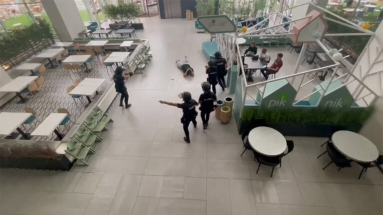 Todo comenzó con la emisión por megafonía de un mensaje que indicaba que se debía abandonar el centro comercial inmediatamente por la salida más cercana, activando así el plan de evacuación ante emergencias de los grandes almacenes.