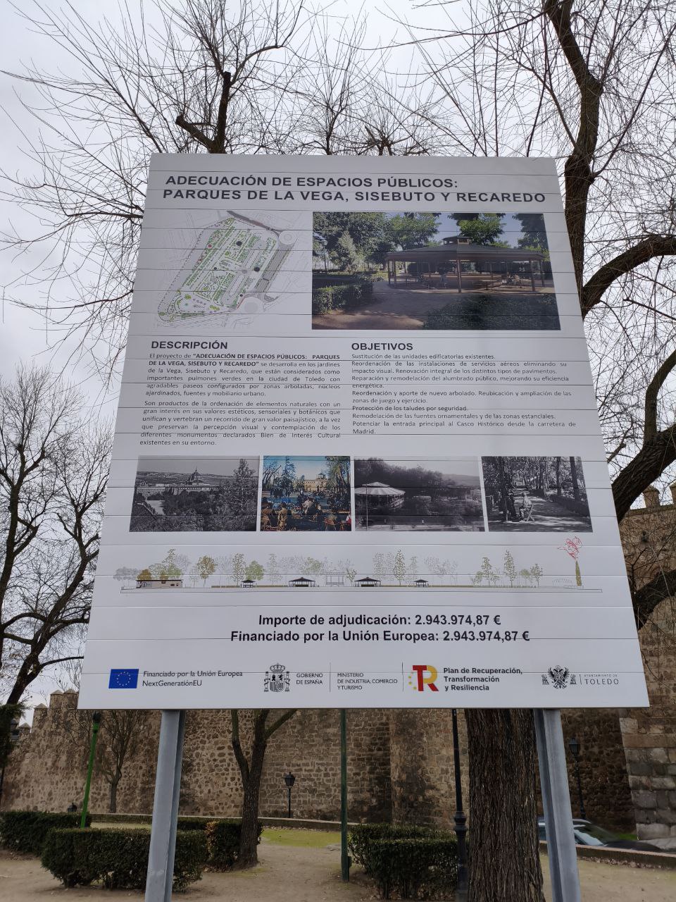 Cartel con el plano e información de la actuación que se desarrolla en la Vega, Sisebuto y Recaredo / Imagen: Toledodiario.es