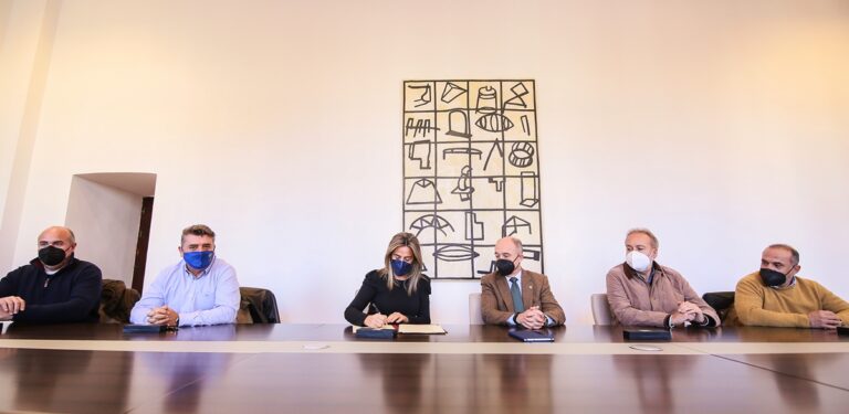 La alcaldesa de Toledo, Milagros Tolón, y representantes sindicales del Ayuntamiento han firmado un acuerdo para la implantación del teletrabajo en la Administración local.